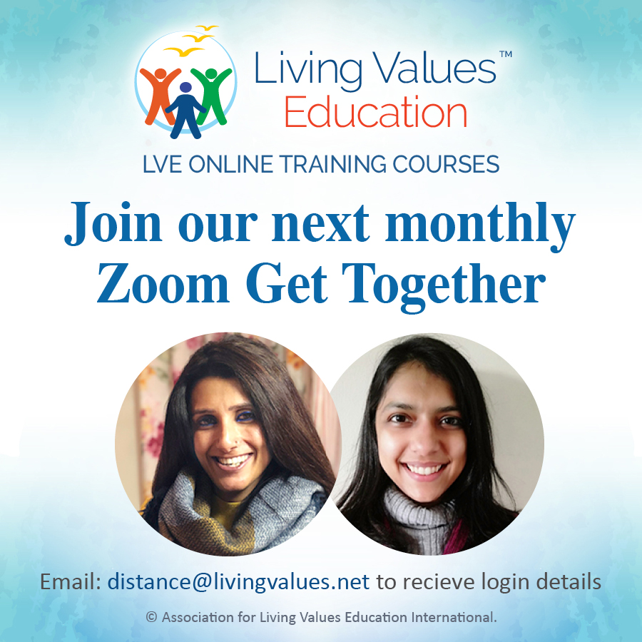 Living Values invites to join our October monthly "Get Together" via Zoom with facilitators Toral and Shweta.
