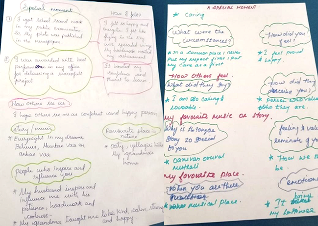 The conflict resolution model was new to them and they were eager to try it. They felt it would help children calm down and try to resolve issues peacefully. Mind mapping was seen as very useful for bringing clarity about values and anti-values and its effects on self and other others. It was found to be simple and effective for children to understand.