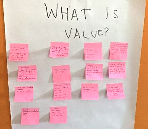 - Cultural and national values - Collective discussion to define what values are, grounded in lived experience.