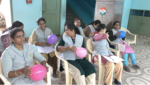 The session also included three student groups, where values were explored through age- appropriate experiential activities. Teachers observed how children responded when engaged in a safe, non-threatening environment. For the children's session we used 'Values that Ganesha teaches to talk about core values'. This was done to capitalize on the local culture & Ganesha Pooja festival mood during the time of the year.