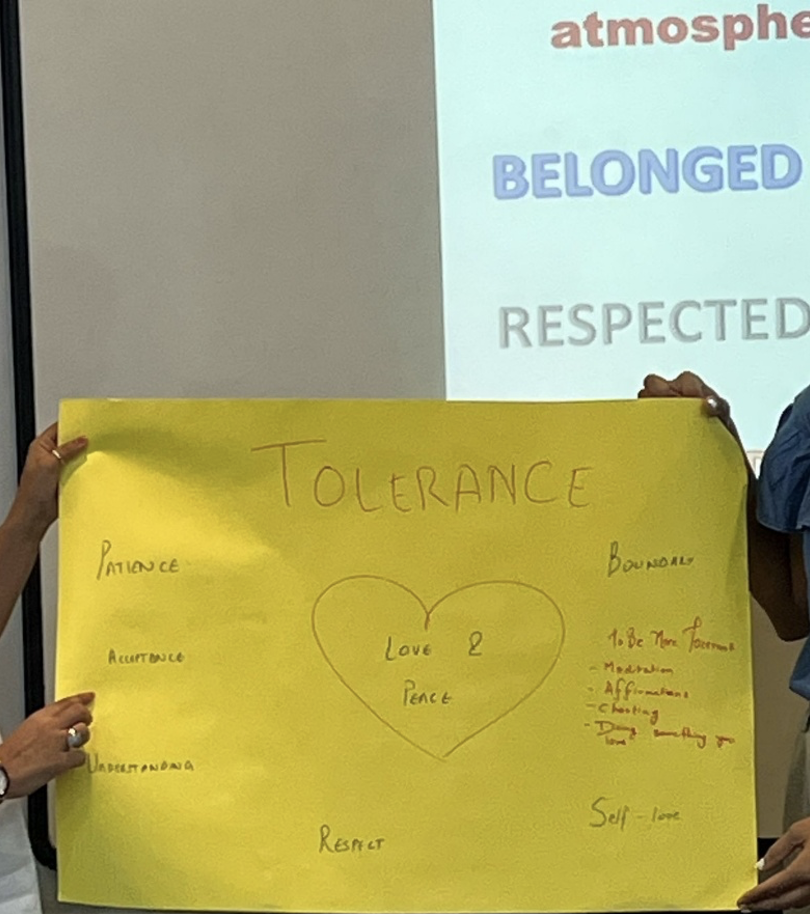 Participants reflecting and discussing on - What are the situations that challenge your peace? And how would you advise yourself to overcome them?