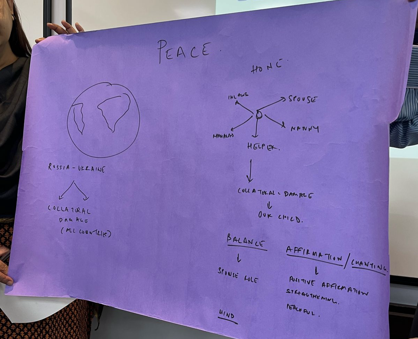 The session also included a brief introduction to mindfulness practices, encouraging parents to incorporate mindfulness into their daily routines. Practices such as deep breathing, meditation, and being present in the moment were discussed as tools to enhance emotional regulation and reduce stress in both parents and children. A vision of "A Peaceful Home" was created through a commentary, which the parents wanted to practice every time they said they lost their "Peace".