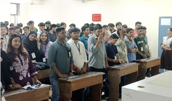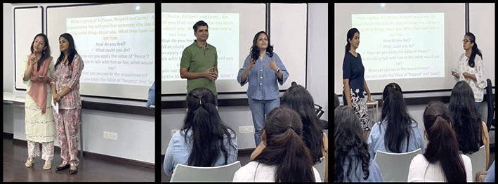 We are happy to receive an invitation from Lala Lajpat Rai College of Management for a half-hour Living Values session on Values-based Leadership and mental well-being. A successful session was conducted for 120 students. Below is the snapshot of workshop proceedings.