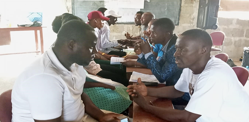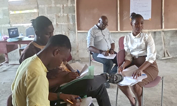 The facilitators were Mr. Alhaji Kamara and Mr. Alpha Abu Kamara, a former focal person in Sierra Leone, who travelled from the far south of the country to join the training. Mr. Alpha Abu Kamara was hosted by Mr. Alhaji Kamara.