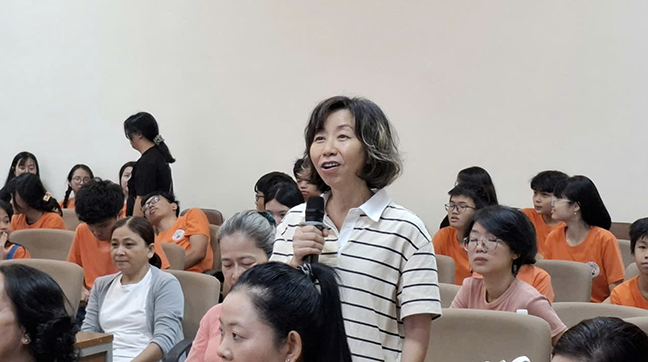 Program ĐỒNG HÀNH CÙNG EM was initiated by Thao Dan Social Service Center to improve comprehensive and sustainable learning capacity for students with special circumstances. Ms. Bich Ha contributed opinions and expressed her willingness to conduct training programs on values as well as transfer documents so that the center's staff can continue to incorporate values into the organization's activities, supporting children with special circumstances to rise and become steadfast in life.
