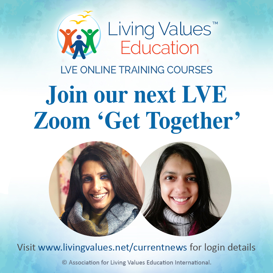 Living Values invites to join our April LVE "Get Together" via Zoom with facilitators Toral and Shweta.