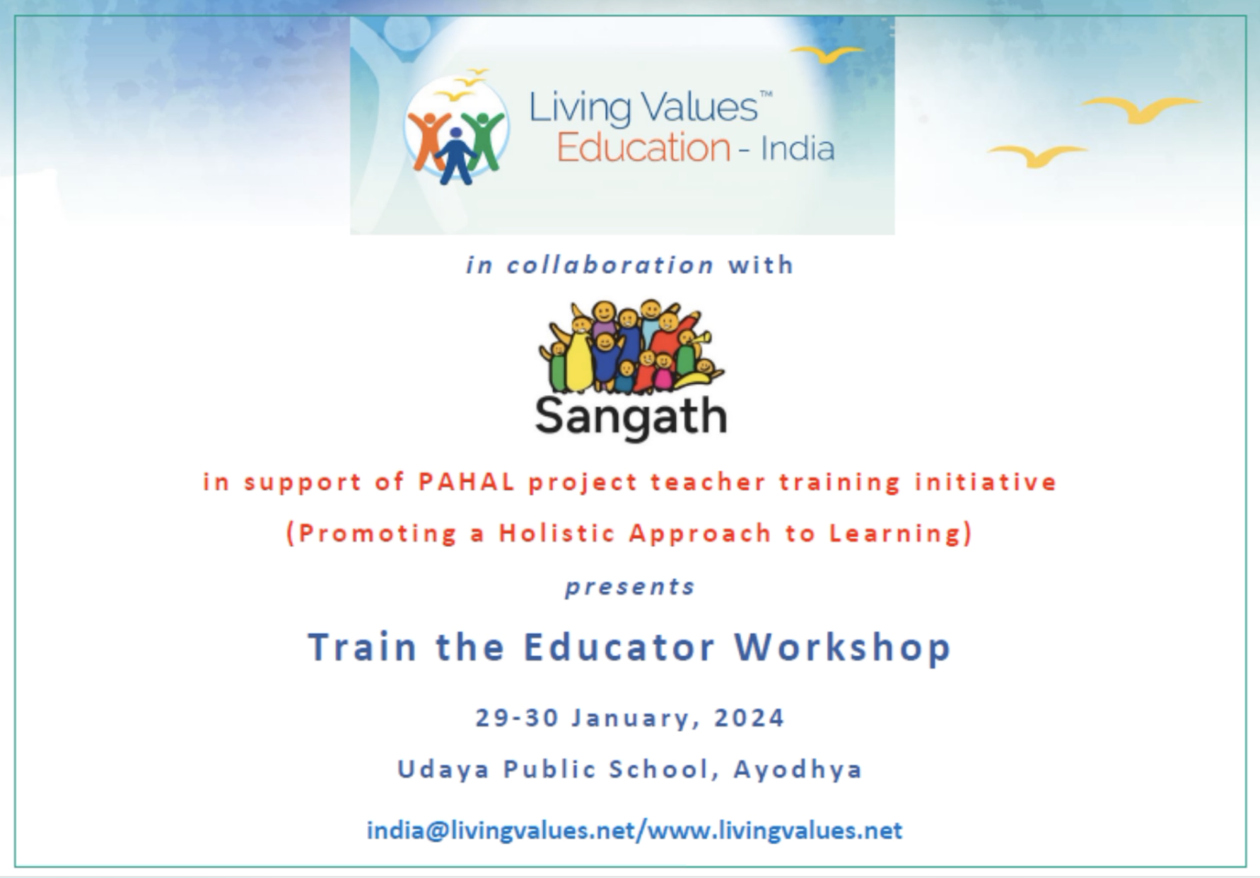 Living Values Educators training, India - January 29-30, 2024