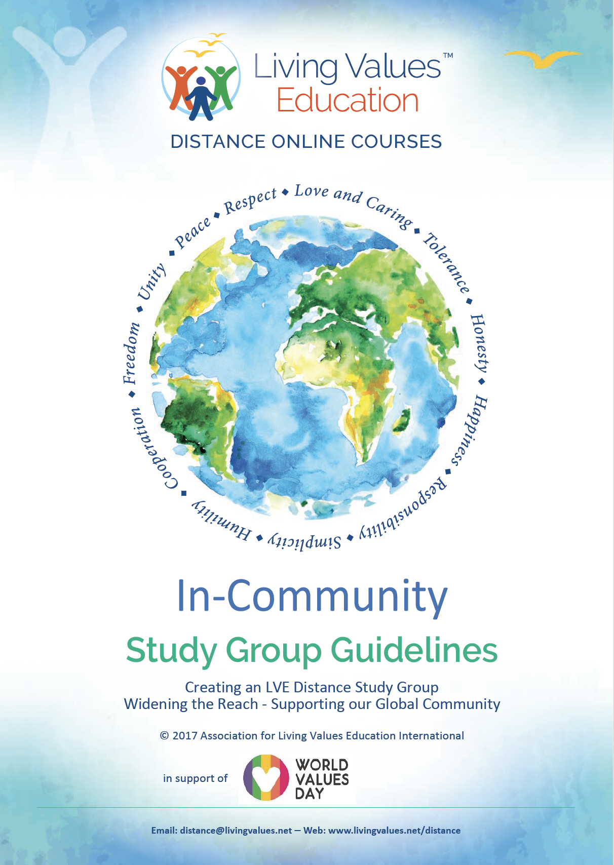 This will provide all the information needed to allow anyone to embrace becoming an LVE Study Group facilitator and manage a small community group. All you have to do is send out this booklet with your personal note, inviting them to apply to distance@livingvalues.net for the supporting Course materials and register their group. It's a great opportunity to share to all your friends and contacts about Living Values Education and what we offer.